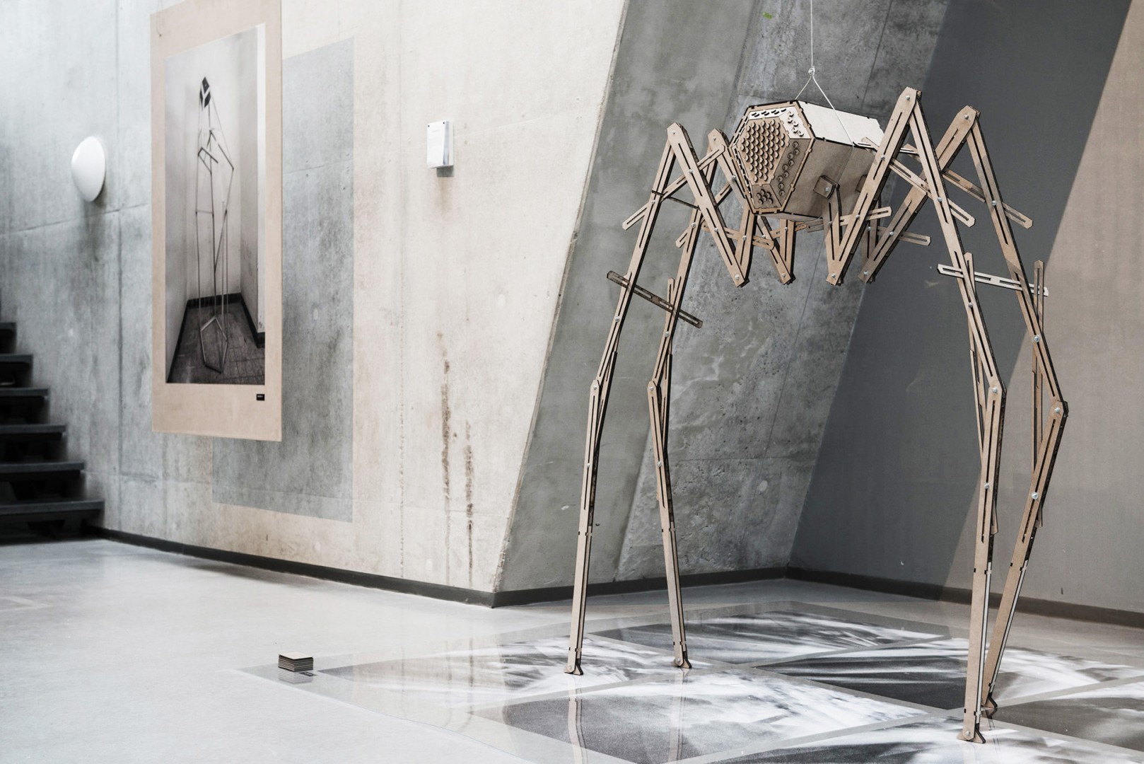 Geïnspireerd door de opbouw van het dierlijk oog ontwierp Sander een geometri-sche cameraconstructie, ‘Eyomimicry’. Door fotografische technieken met natuur-lijke feiten te combineren bouwt hij een nieuwe mechanische, visuele extensie. Daarmee creëert hij een eigenwijze gefragmenteerde manier van kijken.